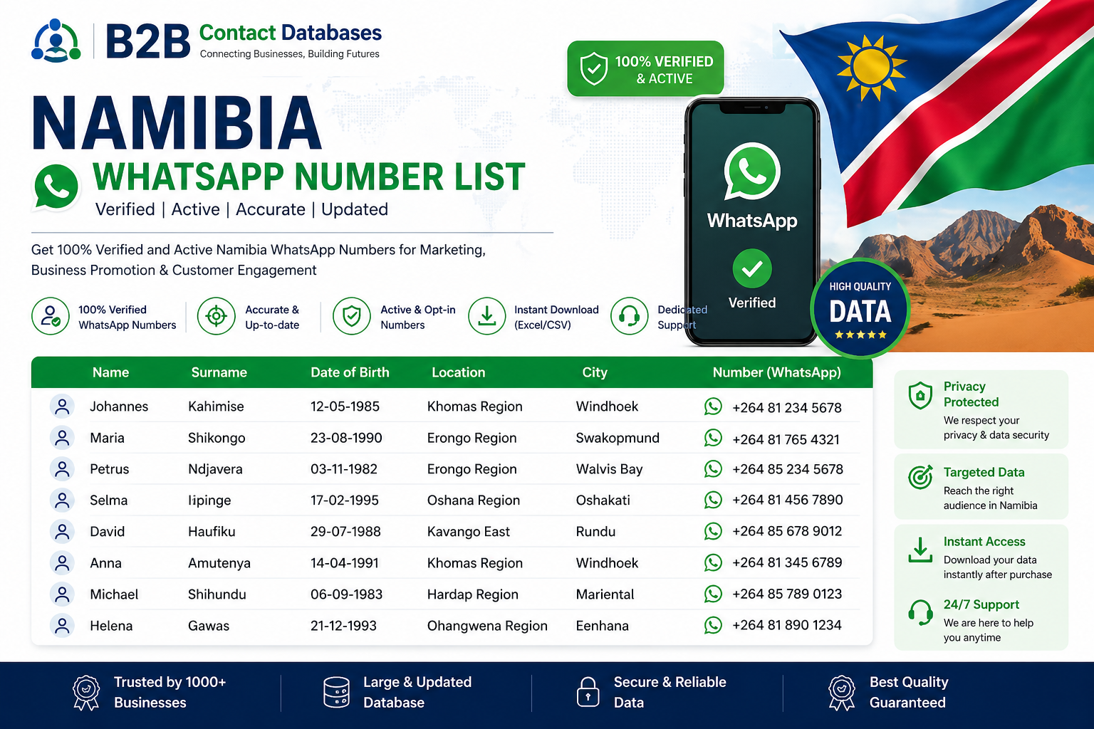 Our Namibia WhatsApp Number List offers: